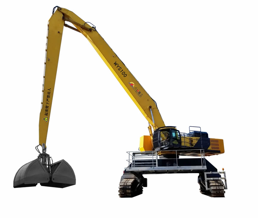 WYS series hydraulic crawler type steel grabber can be equipped with diesel engine drive, electric drive or oil electric hybrid "double power" drive system, which is reliable in quality